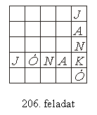 sorban, mindegyik oszlopban és mind a két átlóban mindegyik betű